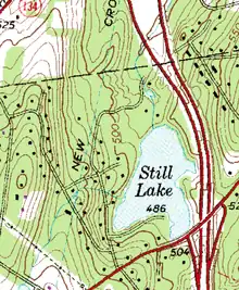 In the late nineteenth century the New York Aqueduct Commission built the New Croton Aqueduct, a brick-lined tunnel several hundred feet underground, to supply water from the Croton reservoir to New York City. The aqueduct is shown on a 1914 atlas of Westchester County, passing under property owned by Wilbur D. Titlar.[4] Shaft No. 2 of the aqueduct[5] is near Tate's swamp on the north of the Titlar property. This property of 165 acres was deeded from Mr Titlar in June 1915 to George W. Still, who in 1929 built a dam on the property to create Still Lake .[6][7][8][9]