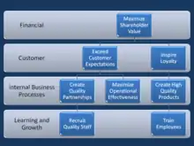 - ↑ Kaplan, Robert S; Norton, David P. (1996). The Balanced Scorecard, Translating Strategy into Action. USA: Harvard Business Press. pp. 30–32 and 148–150. ISBN 0-87584-651-3.