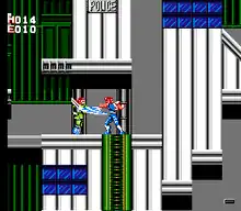 The NES version of Strider was conceived as part of a three-way collaboration between Capcom and manga studio Moto Kikaku, which also included the Strider Hiryu manga by Tatsumi Wada serialized in the manga anthology Comic Computique and a separately developed coin-operated video game version.[5] Unlike the arcade game, the NES version of Strider closely follows the same storyline depicted in the Strider Hiryu manga, which involves Hiryu fighting against his former Strider allies.[6] The Family Computer (Famicom) version of Strider Hiryu was first announced while the manga version was still in serialization[7] and was scheduled to be released in Japan following the collected edition of the Strider Hiryu manga in the fourth quarter of 1988.[8][9][10] However, the Famicom version was delayed to a 1989 release[11][12] before it was eventually canceled. The NES game was still localized for the North American market and released shortly after the arcade game in 1989.