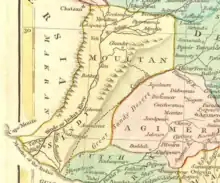 ![]() Multan Subah depicted in map of Mughal India by Robert Wilkinson (1805) | |||||||||