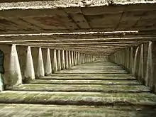 Only 6 kilometres (3.7 mi) separate La Rochelle and La Pallice so they are usually considered as one port. An unnamed bunker was built at La Pallice (Base sous-marine de La Rochelle); it was started in April 1941.[21] Similar building techniques to those used in St. Nazaire were employed. Due to the relative ease of construction, the main structure was ready for its first U-boats six months later. A bunkered lock was begun in June 1942. It was completed in March 1944. Scenes for the 1981 films Das Boot[21] and Raiders of the Lost Ark were shot in La Pallice.[22]