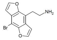 - ↑ Nichols DE, Snyder SE, Oberlender R, Johnson MP, Huang XM (January 1991). "2,3-Dihydrobenzofuran analogues of hallucinogenic phenethylamines". Journal of Medicinal Chemistry. 34 (1): 276–81. doi:10.1021/jm00105a043. PMID 1992127.