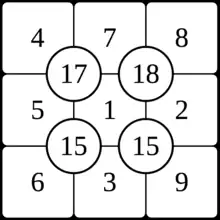 - ↑ "Sujiko". Puzzler. Retrieved 2016-07-22.
