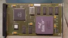 These cards were the successor to the earlier SunPC cards that had been available for Sun SBus or VME systems.[4][5] Prior to this a software only application binary interface and DOS emulator called Wabi was used.[4] SunPC was offered as a replacement software emulator that could be used to run more advanced applications, with higher performance, by adding an X86 hardware accelerator.[6] In 1992 the SunPC Accelerator SX (16 MHz 486SX) or SunPC Accelerator DX (25 MHz 486DX) were available for SBus workstations,[7] though the SunPC program emulates the PC memory with or without the accelerator present.[8] An accelerator card is needed for software that requires 80386 or 80486 hardware, such as Windows 3.11 running in enhanced mode or Windows 95; without this hardware SunPC runs in software-only mode which emulates an 80286.[8] In 1997 a 133 MHz 5x86 AMD SBus co-processor was available.[9]