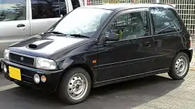In November 2006 Suzuki reintroduced the Cervo name.[23] The modern, Alto-based Cervo is still a kei car but is more luxurious than its predecessor. It was introduced with the 658 cc K6A engine (54 hp in the normally aspirated VVT G version, 60 PS in the turbo T and TX version).[24] It was only available as a five-door with a four-speed automatic (with a manual mode in the turbo cars), and was marketed as a more masculine alternative to the MR Wagon. The higher specification Cervos had keyless entry and Bluetooth. In June 2007 a G Limited normally aspirated model was added, with the fourteen-inch alloy wheels and rear spoiler of the TX.