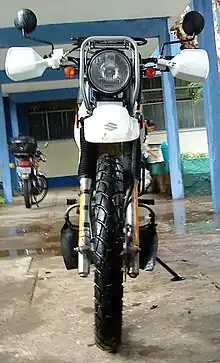 Introduced in 1996 the DR200SE was a derivative of the DR200 and has remained mostly unchanged until production stopped in 2013 with the introduction of the DR200S which is essentially the same bike mechanically with a few minor upgrades to the seat and the plastics. This lightweight, low-cost motorcycle is often used by the Motorcycle Safety Foundation to teach beginners how to ride. It has a four-stroke, 199 cc (12.1 cu in) single-cylinder engine and can be ridden offroad or licensed for street use in the United States. It has a five-speed transmission and push-button start with electronic-ignition. Some models outside the United States have a kickstart, handguard, left and right side stand, oil radiator, front luggage carrier-headlight guard and rear luggage carrier.