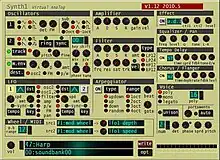 Synth1 is a digital synthesizer based on the Clavia Nord Lead 2 which is also a digital synthesizer.[11] Synth1 combines the common sound synthesis method of subtractive synthesis with FM synthesis, with the first oscillator having a parameter for frequency modulation. Structurally, the software behaves as though it were a modular analogue synthesizer. MIDI from the host music sequencer goes into the arpeggiator, which then sends the final MIDI information to all active voices, which each consist of the oscillators, filter, and amplifier. The LFOs exist outside of the chain, and can modulate certain parameters of the oscillators, filter, and amplifier. The information from the voices, after the LFO modulation has been added, is then sent to the mixer. From the mixer, the sound information is sent through the equalizer, delay, and chorus modules, after which the sound data is output to be turned into audible sound by the sound card associated with the host program.[2]