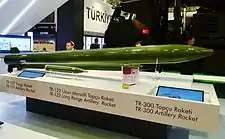 The TRG-300 Tiger[3] (also known as TRG-300 Kasirga) is a Turkish guided multiple launch rocket system manufactured by the ROKETSAN corporation.[4] The system has four 300 mm rocket launcher tubes and its rockets can hit a maximum range of 120 km.[4][5]