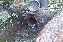 Taff's Well spring emerges from the southern limb of the south Wales Coalfield,[12] Carboniferous "Millstone Grit" (Marros Group) occurs in the immediate area of the Taff's Well thermal spring. The underlying Carboniferous Limestone can be seen outcropping just south of Taff's Well.[13] The underlying Devonian Old Red Sandstone outcrops over 2 km southeast, just north of the M4 motorway.