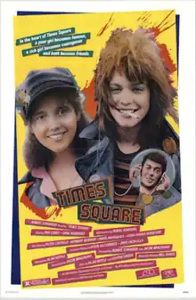 Times Square is a 1980 American drama film directed by Allan Moyle and starring Trini Alvarado and Robin Johnson as teenage runaways from opposite sides of the tracks and Tim Curry as a radio DJ. The film is set in New York City. The plot embodies a punk rock ethic of misunderstood youth articulating their frustrations toward adult authority through music.