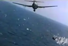The use of U.S. Navy gun camera film such as the downing of a Japanese Kawanishi H8K "Emily" flying boat by a Grumman F6F Hellcat, created an authentic look.