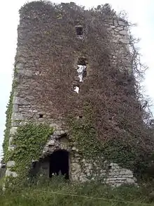 The building is a ruined tower house, a lightly fortified dwelling, dating to the Anglo-Norman period.[3] It was held by the Sutton family in 1307, and may have been the property of one William Devoreux of Talleraght who is mentioned as being the recipient of a pardon in 1597 in the Elizabethan Fiants.[4] By 1641 it appears to have been held by a Matthew Forde, though it may have been in disrepair by the Civil Survey of the mid-1650s.[5]