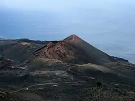 Teneguía (Spanish pronunciation: [teneˈɣia]) is a monogenetic cinder cone – a volcanic vent which has been active once (in 1971) and has had further seismic activity.[2] It is situated on the island of La Palma, one of the Canary Islands, and is located at the southern end of the sub-aerial section of the Cumbre Vieja volcano, of which Teneguía is just one of several vents.[4]
