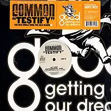 "Testify" is the fourth single from rapper Common's 2005 album Be. Clocking in at just above two and a half minutes, it is the second shortest track on Be (after the album's intro). It is produced by Kanye West, whose beat heavily utilizes vocal samples from "Innocent Til Proven Guilty" by Honey Cone. Spence D. of IGN.com comments on this saying: "'Testify' [...] features an intricate layering of vocals which provide such an hypnotic backdrop that you almost forget to listen to Common's compelling storytelling."[1] The song's story is about a woman who manipulates a judge and jury to find her partner guilty of a crime she committed. After the case is settled, she starts laughing that she is the criminal. Sean Malcolm of AllHipHop.com considers Common to have "paint[ed] pictures of extravagant court trials" on "Testify."[2] The song was a critical hit garnering a nomination for Best Rap Solo Performance at the 48th Grammy Awards.