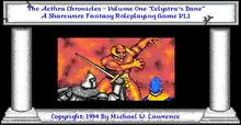 The Aethra Chronicles - Volume One: Celystra's Bane or The Aethra Chronicles (also known as Aethra for short) is an MS-DOS role-playing video game released as shareware in 1994. The game is based on the Rolemaster game system, a Pencil & Paper role playing game. It was written - mostly as a one-man project - by Michael Lawrence with some help from others for the graphics and sound/music.
