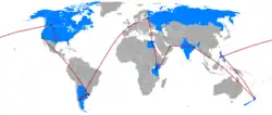 Filming for The Amazing Race 5 began on January 30, 2004, and finished on February 27.[6] This season traveled 72,000 miles (116,000 km), which was the show's longest route yet, covering six continents and twelve countries.[7] The teams visited nine countries not previously seen on the show: Uruguay, Argentina, Russia, Egypt, Kenya, Tanzania, the United Arab Emirates, the Philippines, and Canada.