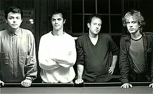 ![]() The Bongos in 1983. (Clockwise from center): Richard Barone, James Mastro, Rob Norris, Frank Giannini. | |
