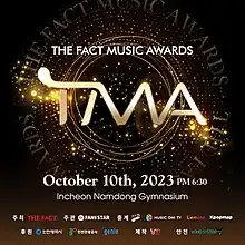 The Fact Music Awards (Korean: 더팩트 뮤직 어워즈; abbreviated as TMA) is an awards ceremony hosted by The Fact and organized by Fan N Star that recognizes major contributors to the Hallyu wave.[1] Established in 2019, The Fact Music Awards determines its winners through objective data from Gaon, a panel of judges, and the support and participation scores of fans at home and abroad.[2]