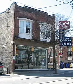 The Goof, officially the Garden Gate Restaurant, is a well known eatery in the Beaches neighbourhood of Toronto. Founded in 1952, it serves Canadian Chinese cuisine as well as diner fare such as breakfast and hamburgers. Its nickname comes from the restaurant's neon sign. The word "good" is vertical on the sign and "food" horizontal, so when at some point in its history the "d" in "good" burnt out, it read "Goo F". It is today near universally referred to as The Goof by media and locals, while the official name remains Garden Gate.