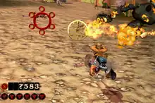 The Gunstringer is a Kinect title which makes use of the player's body to control the game rather than a gamepad. The player controls the character's movement with their left hand, while the right is used to aim and fire the character's gun.[2] Players can mark multiple enemies to fire on and once the player makes a firing gesture all marked enemies are shot by the character.[2] Certain moments in the game are presented as a rail shooter and allow the player to use both hands to control two guns while the character moves along a pre-defined path.[3]