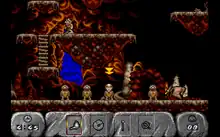 The Humans is a puzzle game similar to Lemmings whose objective is to manipulate the given number of humans, taking advantage of abilities and tools to achieve the level's goal, usually consisting of finding a certain tool, killing a certain number of dinosaurs or bringing at least one human to the end point, marked by a conspicuous colored tile. Each level is independent of the next, each with its own tools, goal, and set number of humans allowed per level. The only things that carry from level to level are the total number of humans in the player's tribe and the player's total score.[2][3][4][5][6][7]