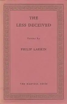The Less Deceived, first published in 1955,[1] was Philip Larkin's first mature collection of poetry, having been preceded by the derivative North Ship (1945) from The Fortune Press and a privately printed collection, a small pamphlet titled XX Poems, which Larkin mailed to literary critics and authors. Larkin was unaware that postal rates had gone up, and most recipients, when asked to pay the difference for delivery of a pamphlet by a little-known writer, turned them away; only around 100 copies were printed.