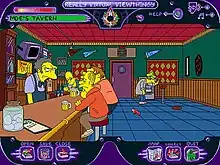 Virtual Springfield has the overall goal of collecting an entire set of character cards throughout Springfield.[2] To fully do so, the player must unlock hidden areas by obtaining secret items.[1] A map of the town is featured that gives instructions to players on where to go so that they can progress through the game.[1] Various minigames can be played at certain locations in the game.[2] These include some video games that have previously been seen on The Simpsons, such as the boxing game Slugfest that Homer and Bart played in the season one episode "Moaning Lisa".[1]