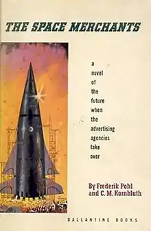The Space Merchants is a 1952 science fiction novel by American writers Frederik Pohl and Cyril M. Kornbluth. Originally published in Galaxy Science Fiction magazine as a serial entitled Gravy Planet, the novel was first published as a single volume in 1953, and has sold heavily since. It deals satirically with a hyper-developed consumerism, seen through the eyes of an advertising executive. In 1984, Pohl published a sequel, The Merchants' War. In 2012, it was included in the Library of America omnibus American Science Fiction: Four Classic Novels 1953–1956. Pohl revised the original novel in 2011 with added material and more contemporary references.