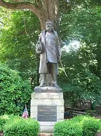 Kane County, Utah was named for Thomas L. Kane,[35] as was the Kanesville Tabernacle in Council Bluffs, Iowa.[36] The Church of Jesus Christ of Latter-day Saints maintains as a historic site the Thomas L. Kane Memorial Chapel, in Kane, Pennsylvania, in recognition of Kane's friendship and assistance. Kane was a founder of the Borough and is buried in the chapel.[37] In addition, a bronze statue of Thomas L. Kane is displayed in Utah's Capitol Building, identified as a "Friend of the Mormons".[38] An area of the Hooper Ward, in northeast Hooper, Utah was divided off and was named Kanesville in honor of Thomas L. Kane. The area was known as Kanesville which was later incorporated into Hooper, Utah and Farr West, Utah. A stone and bronze memorial stands behind a church building with his likeness.[39]