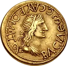 When Rhescuporis II died in 93,[2] Sauromates I succeeded his father as Bosporan King and reigned until his own death in 123.[2] He was a contemporary of the Roman Emperors Domitian, Nerva, Trajan and Hadrian. Sauromates I continued his father's legacy of rebuilding the Bosporan Kingdom. In 68, Rhescuporis II had restored the Bosporan Kingdom, previously a part of the Roman province of Moesia Inferior, as a semi-independent Roman Client State. On coins, his royal title is in Greek: ΒΑΣΙΛΕΩΣ ΣΑΥΡΟΜΑΤΟΥ or of King Sauromates.