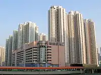 Grandeur Terrace (Chinese: 俊宏軒) is a public housing estate in Tin Shui Wai.[1] It is the only estate in Tin Shui Wai which its name does not have the prefix "Tin" (Chinese: 天). It was a HOS and PSPS court, and it is the largest PSPS in Hong Kong with 4,100 residential units.[50][51] It was jointly developed by the Housing Authority and Rich Score Development Ltd, a wholly owned subsidiary of Chun Wo Holdings Limited.[52] It started construction in 2000 and was completed in 2003. When completion, the estate was transferred to public rental housing.[53]