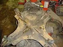 The table top and rim clamps hold and rotate the wheel to mount or dismount a tire. The table top is directly above the foot pedals and below the mount/demount mechanism. The table top is able to rotate clockwise and counter clockwise. The table top is shaped as the letter "X", but it can be a circle in different tire changer models. On each end of the table top, there are pneumatic–powered rim clamps. These rim clamps move in unison to secure wheels onto the table top.[2] Each rim clamp can be adjusted closer or further away from the center of the table top to accommodate smaller or larger wheels.