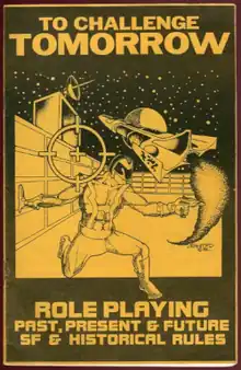 To Challenge Tomorrow was designed by Dave Nalle, and published by Ragnarok Enterprises in 1983 as a digest-sized box containing three booklets and a sample character sheet.[1]