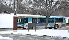 As of December 2019, thirty-six bus routes comprise the TCAT system.[11] Routes are identified by number and are usually indicated on a marquee at the front of the bus, and sometimes on the side as well. TCAT's main hub is Green Street Station, off of the Commons, a two-block pedestrian mall in downtown Ithaca. Most non South Hill routes run through the Cornell University campus; East Avenue and Tower Road near Uris and Statler Halls is considered a secondary hub.[12]