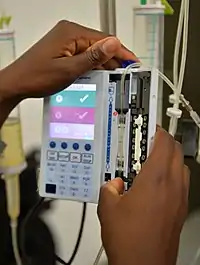 - ↑ Ohashi K, Dalleur O, Dykes PC, Bates DW (December 2014). "Benefits and risks of using smart pumps to reduce medication error rates: a systematic review". Drug Safety. 37 (12): 1011–1020. doi:10.1007/s40264-014-0232-1. PMID 25294653. S2CID 9308973.