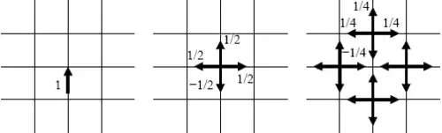 2D TLM example: an incident voltage pulse in two consecutive scattering events.