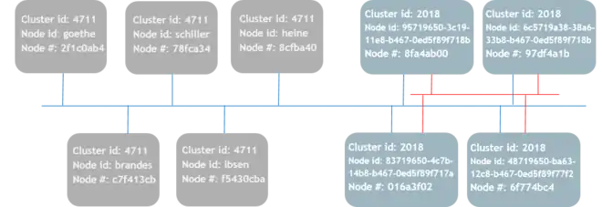 A TIPC network consists of individual processing elements or nodes. Nodes can be either physical processors, virtual machines or network namespaces, e.g., in the form of Docker Containers. Those nodes are arranged into a cluster according to their assigned cluster identity. All nodes having the same cluster identity will establish links to each other, provided the network is set up to allow mutual neighbor discovery between them. It is only necessary to change the cluster identity from its default value if nodes in different clusters potentially may discover each other, e.g., if they are attached to the same subnet. Nodes in different clusters cannot communicate with each other using TIPC.
