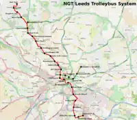 The Leeds trolleybus system served the West Riding of Yorkshire city of Leeds in England between 1911 and 1928. In May 2016, plans to construct a new system, the New Generation Transport (NGT) project, were refused approval from the UK Department for Transport, following a negative report from the planning inquiry.[1]