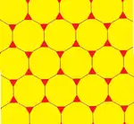 The truncated hexagonal tiling can be used as a circle packing, placing equal diameter circles at the center of every point.[3] Every circle is in contact with 3 other circles in the packing (kissing number). This is the lowest density packing that can be created from a uniform tiling.