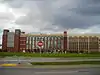 The University of Florida is the flagship university in the State University System of Florida and has many notable buildings located in cities including Gainesville, Jacksonville, and Orlando. The Campus Historic District at the University of Florida comprises 32 contributing properties that are registered with the National Register of Historic Places. As is typical in the United States, most of the university's oldest buildings were designed in the Collegiate Gothic architectural style; since the 1950s, Brutalist and Modern styles have been extensively employed.[1] The university has over 900 buildings on the main campus (about 170 have classrooms).
