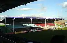 The North Stand is a temporary structure with an estimated life of 10 years, and is the most recent to be developed for the 2011–12 season.[1] It houses approximately 2,000 and is the only stand with supporting pillars. There is a time clock to the top left of the stand. In the summer of 2022, new toilets were added and an indoor seating area with tables were added.