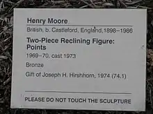 - ↑ "Two-Piece Reclining Figure: Points". Hirsshorn Museum and Sculpture Garden. Archived from the original on 16 February 2022. Retrieved 16 February 2022.