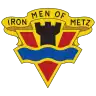 The 95th Infantry Division was assigned to XIII Corps of the Ninth United States Army, Twelfth United States Army Group.[11] The division sailed for Europe on 10 August 1944.[12] The 95th Infantry Division arrived in England on 17 August. After receiving additional training, it moved to France one month later on 15 September. During this time it was reassigned to III Corps.[11] The division bivouacked near Norroy-le-Sec, from 1 to 14 October.[12] It was then assigned to XX Corps of the Third United States Army.[11] The division was sent into combat on 19 October in the Moselle bridgehead sector east of Moselle and South of Metz and patrolled the Seille near Cheminot, capturing the forts surrounding Metz and repulsing enemy attempts to cross the river.[12] It was during the defense of this town from repeated German attacks that the division received its nickname, "The Iron Men of Metz."[1] On 1 November, elements went over to the offensive, reducing an enemy pocket east of Maizières-lès-Metz. On 8 November, these units crossed the Moselle River and advanced to Bertrange. Against heavy resistance, the 95th captured the forts surrounding Metz and captured the city by 22 November.[12]