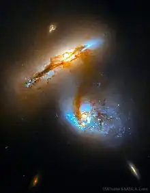 - ↑ Garner, Rob (2019-08-08). "Hubble Catches 2 Galaxies at Play". NASA. Retrieved 2023-01-20.
