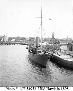 Hermione was purchased by the United States Navy on 2 April 1898, renamed Hawk, and commissioned three days later, Lt. John Hood in command. She sailed from Key West in late April 1898 to join the North Atlantic Squadron in blockading Cuba during the Spanish–American War. On 23 May she accompanied Admiral Sampson's flagship New York (ACR-2) out from Key West. Two weeks later she attacked and destroyed enemy ship Alphonso XII, which carried cargo for Cuba. In late summer she departed for Norfolk where she decommissioned on 14 September 1898.