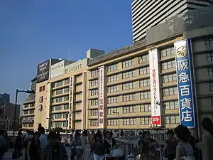 The Hankyu Department Store, built next to the station in 1929, was a pioneer of the successful business model of department stores run by urban railway companies in Japan. The store is still in business at the original location even after the move of the station (as of 2007, the reconstruction of the store building is in progress).