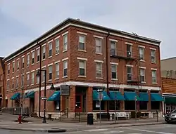 The ovens for the bakery were located in the basement and the retail portion of the business was located in the storefront along Linn Street. Other uses for the building have been a hotel, cafe, and a bar. It was listed on the National Register of Historic Places in 2015.[1]