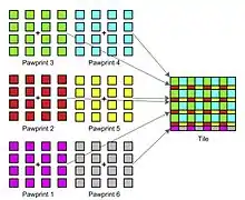 This picture shows how six different "paw print" exposures are combined to make one "tile".