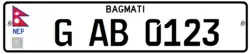 In Nepal, all road vehicles with or without a motor (except bicycles) are tagged with a registration number. This is issued by the state-level Transport Management Office, a government agency under the Department of Transport Management.[1] The license plates must be placed in the front as well as back of the vehicle. The international vehicle registration code for Nepal is NEP.