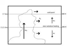 The most significant route of air entering the stratosphere is through the tropical tropopause layer (TTL) via convection.[4] The air masses are shifted by convection are able to rise several kilometers within a few hours. This transport mechanism is fast enough for VSLS lifetimes.[5]
